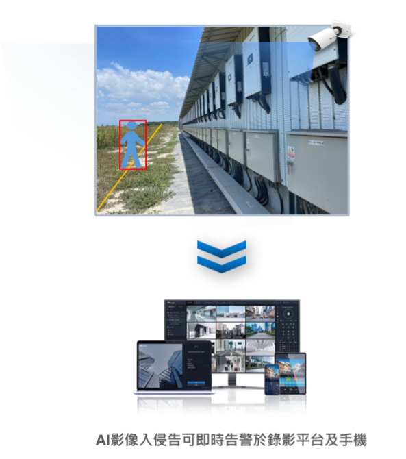 憑藉清波母公司的AI影像分析技術,我們實現太陽能及儲能案場的無人化監控,將案場的陌生人員入侵、熱感高溫警示等提供即時警報。